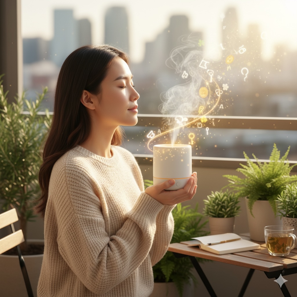 - 香り(嗅覚):お気に入りのアロマや香水をまといましょう。特に、柑橘系やハーブの爽やかな香りは、思考をクリアにし、新しいアイデアを引き寄せる力があります。